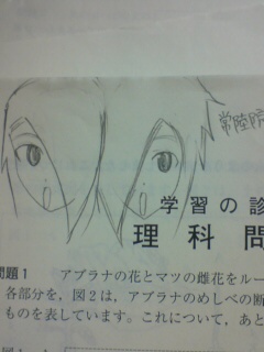 学習の診断の問題用紙の落書き 常陸院ブラザーズならぬ、『デイクスブラザーズ』w デイダラとクスナは兄弟だと未だに思っている〈馬鹿だろ もちろん。。。 光→デイ 馨→クスナ ですよw デイはお兄ちゃん♪ぴったりだと思うw また、桜蘭パロしてみたいなぁ☆